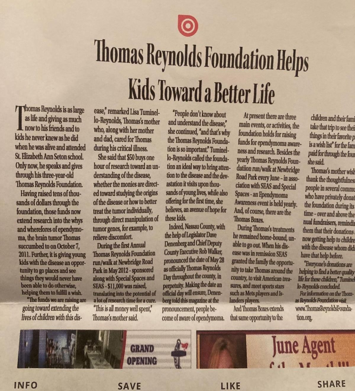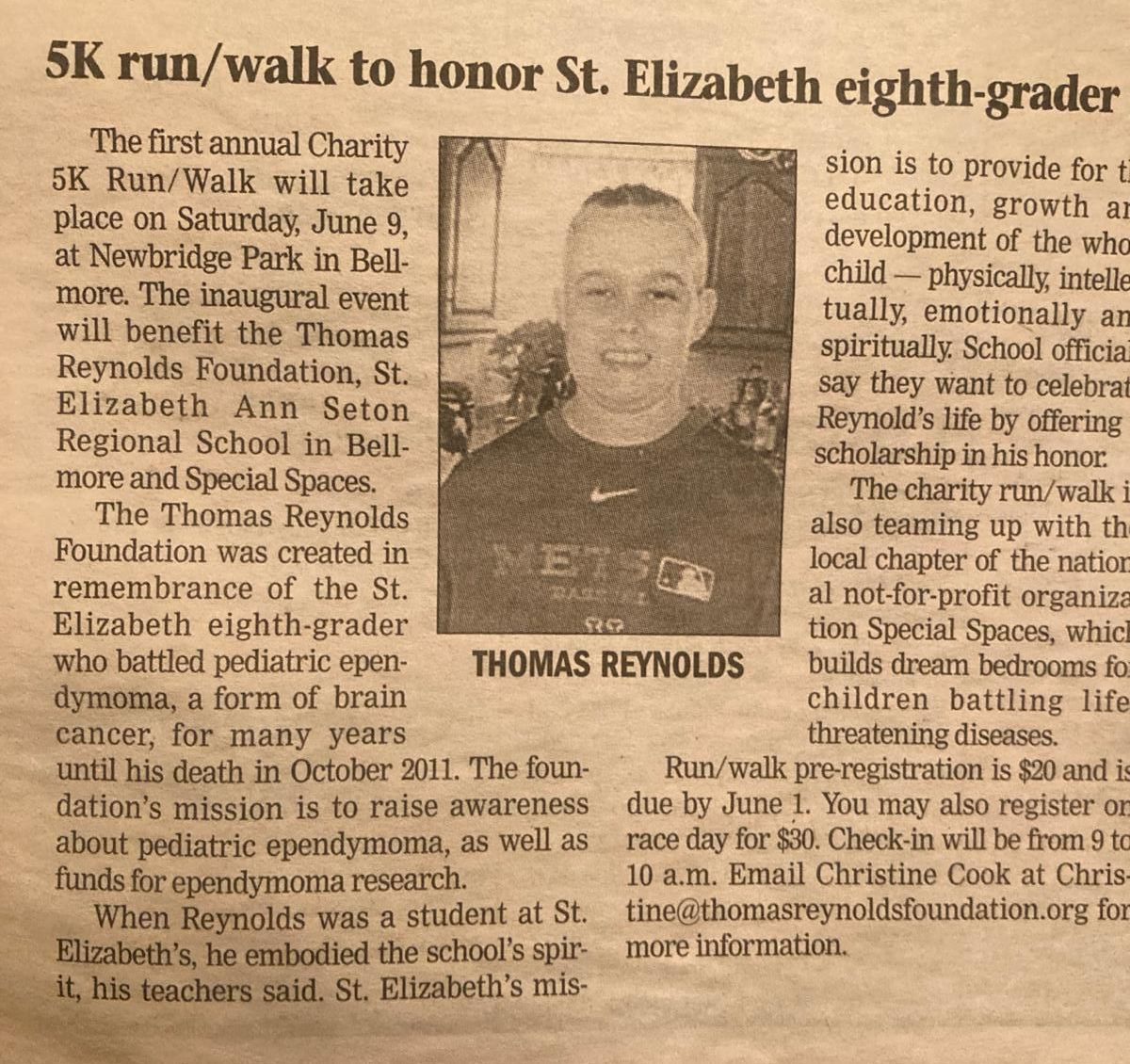 Can't make the Thomas Reynolds Ependymoma Awareness Day and want to contribute?